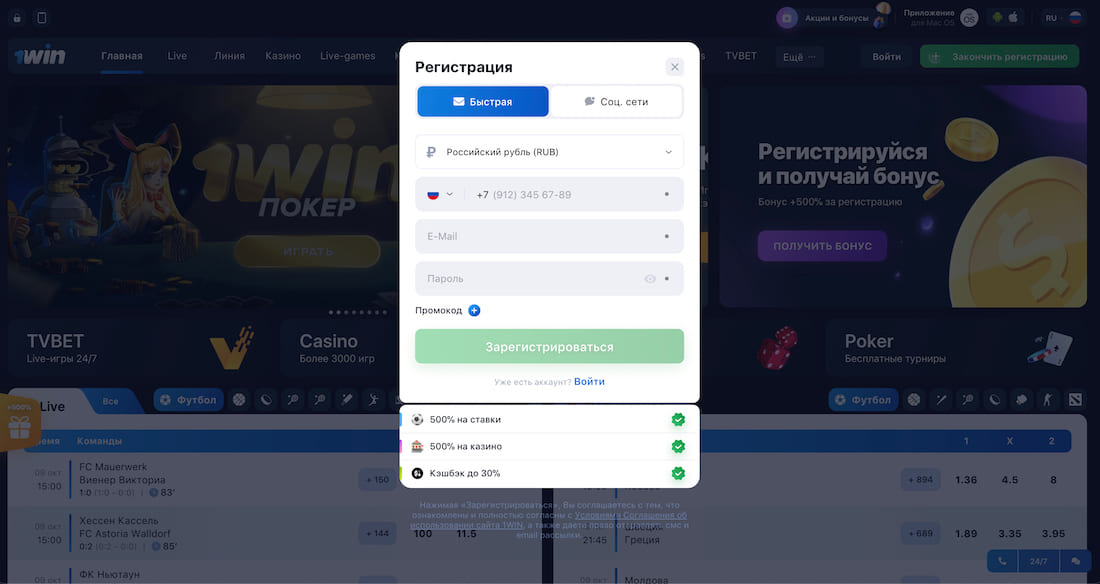 Сегодня при регистрации в казино вводится промокод BK 1вин. Независимо от выбранного способа регистрации будет отображаться сообщение «Добавить промокод». Обратите внимание, что эта функция является необязательной, поэтому будьте осторожны при входе в систему при регистрации. Не забудьте это сделать, иначе вы больше не активируете промокод и приветственный бонус будет потерян.